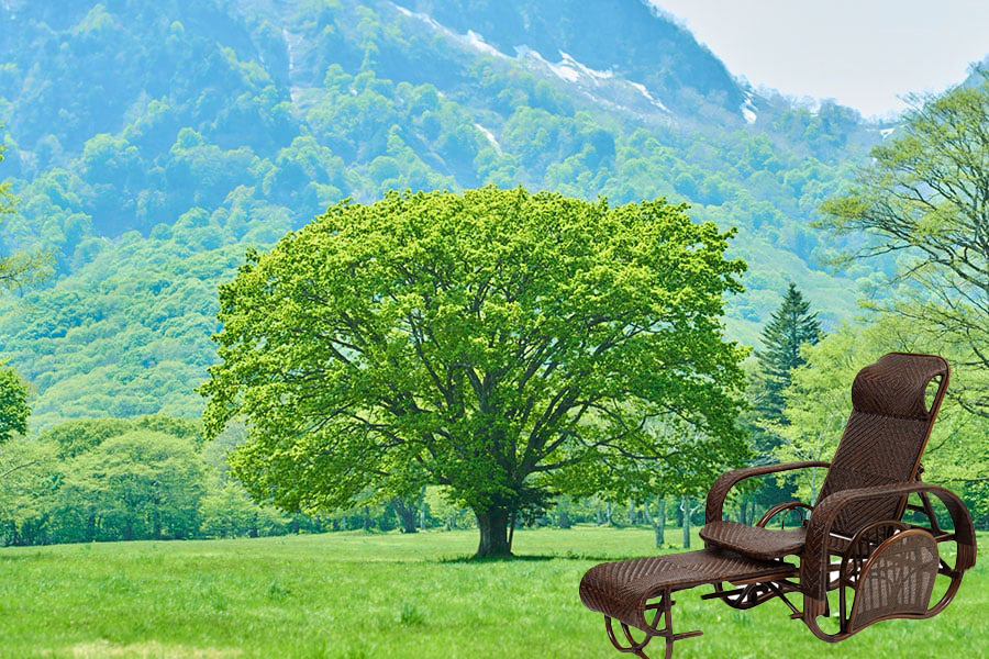 薫風穏やかなる五月晴れの日昼は、ベランダに籐のロッキングチェアーを出して、缶ビール片手にKindle。