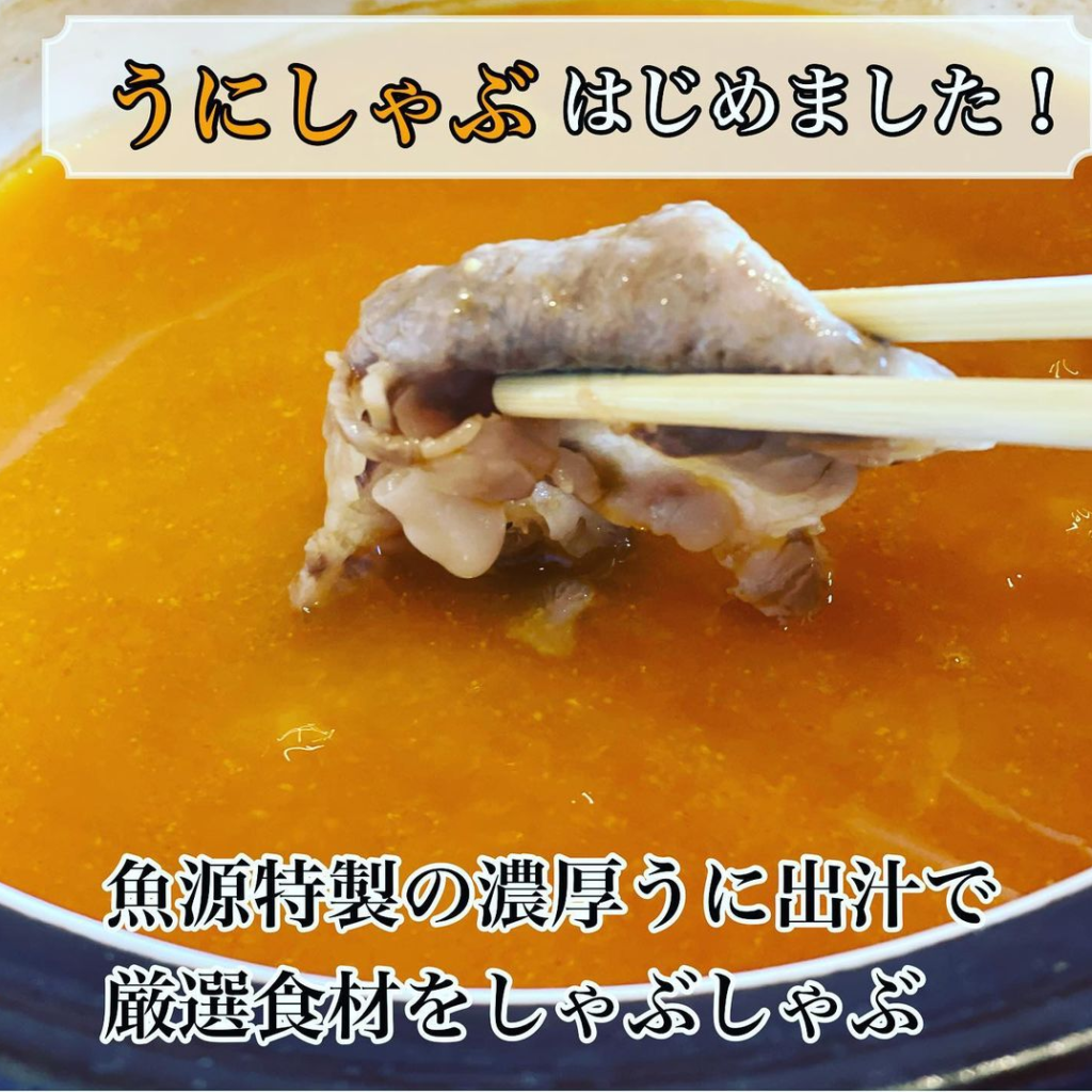 東舞鶴を訪れた際、「魚源」にて家族のお誕生日会。本人のご希望により、ウニしゃぶしゃぶを食す。