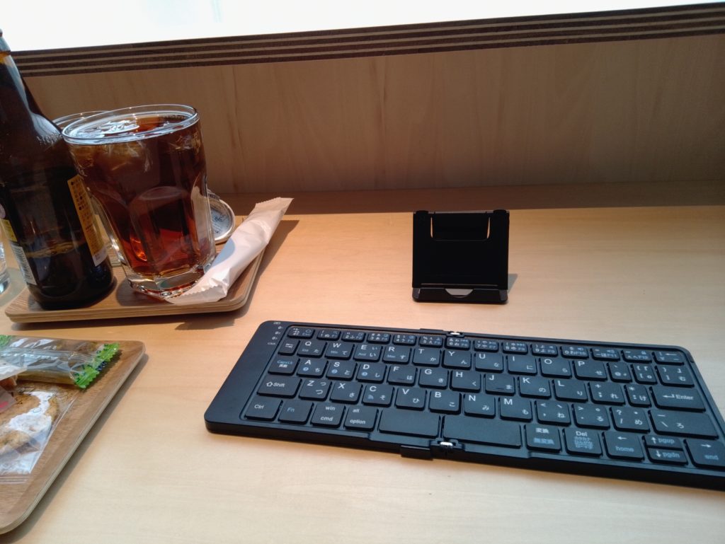 旅の途中、京都高島屋にあるシェアラウンジで、休憩アルコールしながら、ログ気分。
