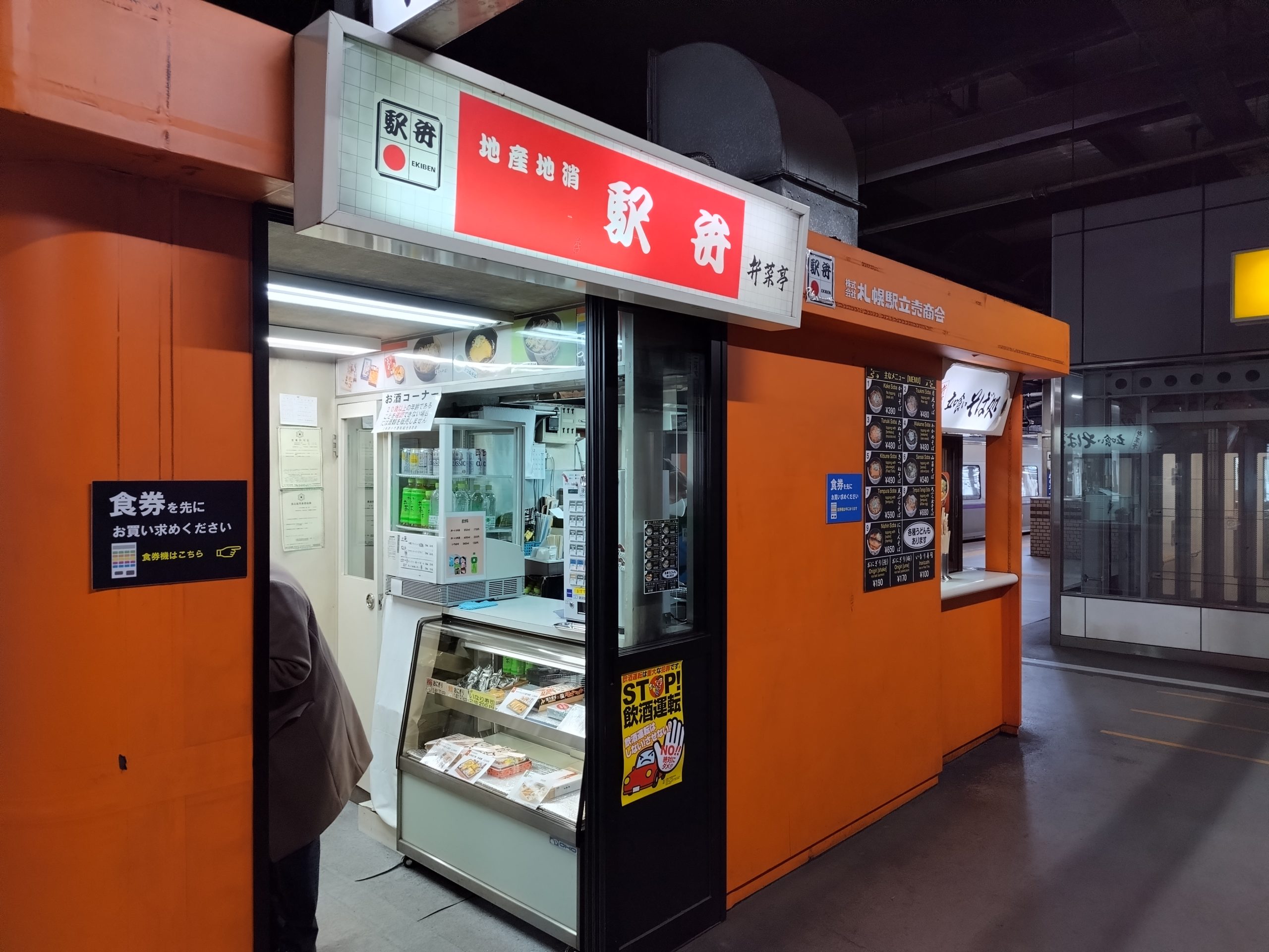 一旦改札口を出ようと改札窓口を尋ねると、駅構内ホームに立ち蕎麦があるとのこと。