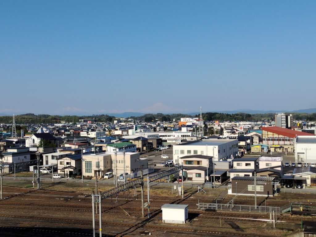 奥羽山脈を背に、山々に囲まれた内陸に位置する。街並みを望むガラスドアを開けると、冷え込んだ空気が足元をつつみこむ。