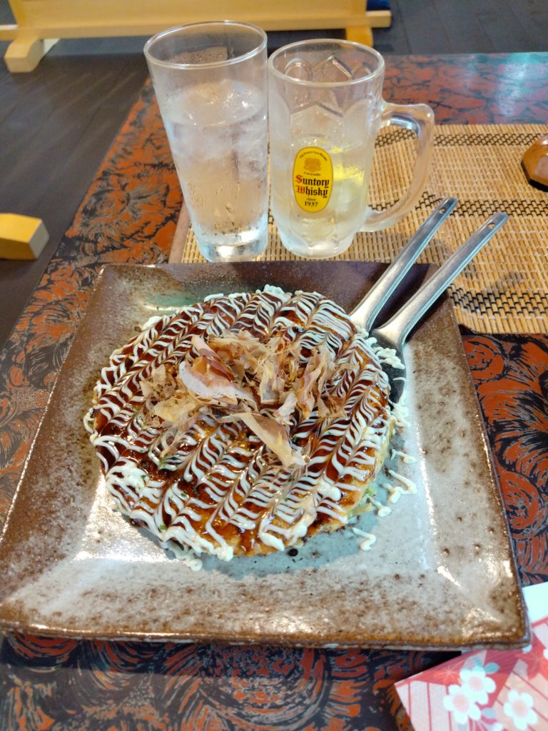 ふ~ふ~焼にてハイボール。深夜食代わりに特製タコ焼きを手土産代わりに。