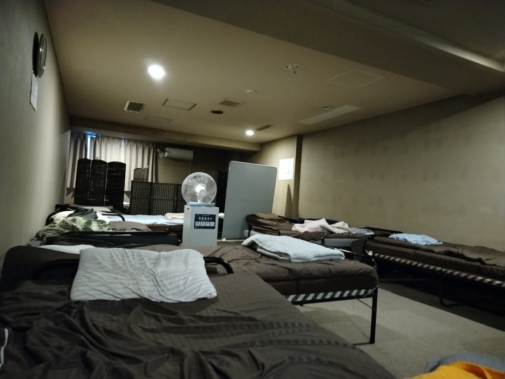 仮眠室は、漫然と簡易ベッドが並べてあるが、これがまたいい。