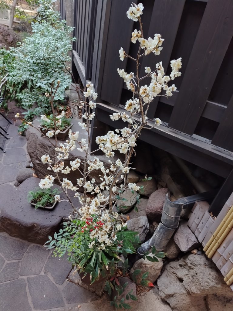 逗留していた旅館の庭先での一枚。 早咲きの梅と南天。 Last Updated on 2026年2月15日 by plough