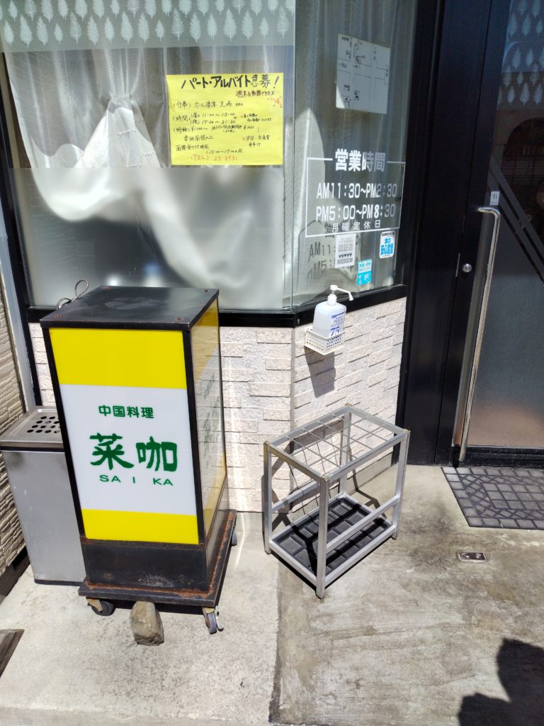 昼ご飯は、図書館ほど近い中華「菜加」。開店すぐに満席になる盛況ぶり。すでに先客が店前に並び、待つこと30分少々。テーブルごとに客を通してくれるので、4人掛け卓を一人で。店前には待つ客が列をなしているので、ゆっくり飲んだくれているわけにもいかない。