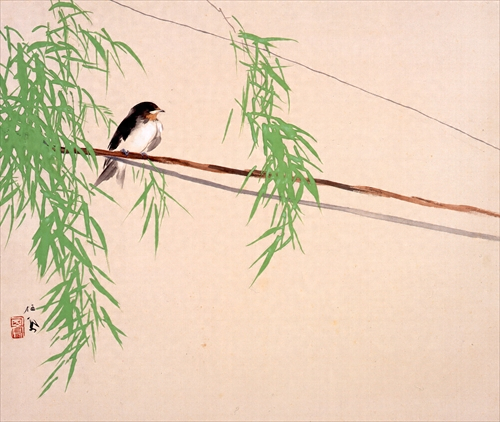 氏は小動物を好んで描いたそうです。代表作の「班猫」などは、峙(そばだ)つ猫の体毛を指先で触れるかのような筆遣い。いまにも飛びかからんばかりの猫の鋭い眼光が印象的です。