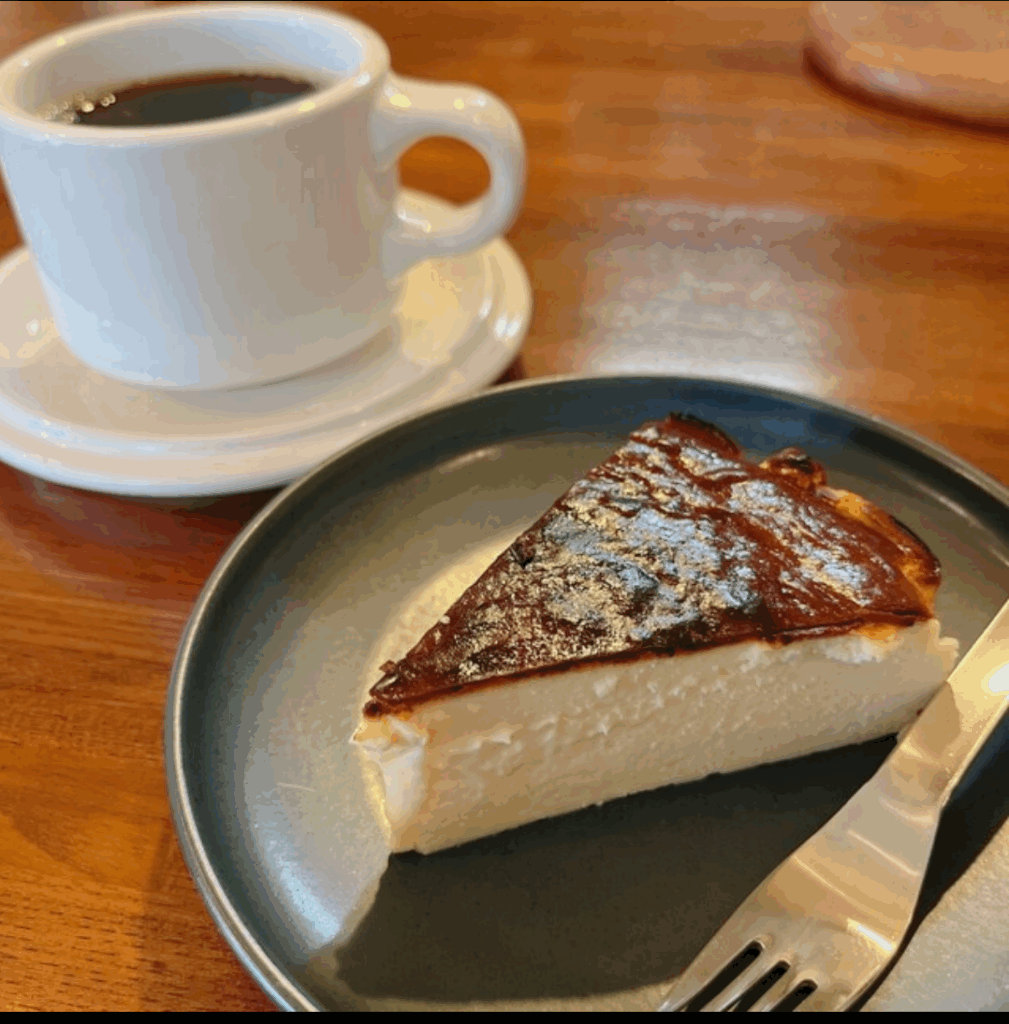 バスク風というのは何なのだろうか、甘すぎない割りにはケーキの表面に甘すぎないシロップらしきものをかけて、かるく炙って焦げ目をつけてある。